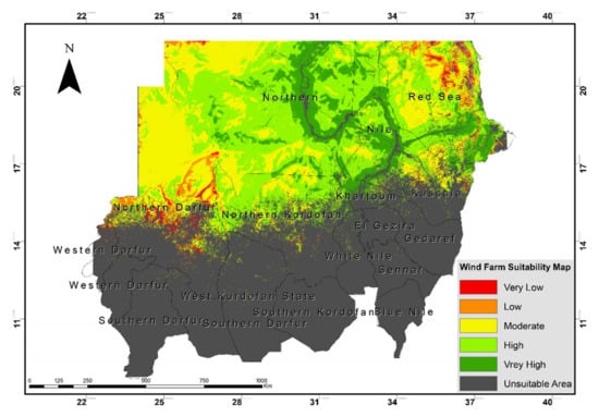 - Proposing a high-resolution wind farms suitability mapping-based Fuzzy Analytical Hierarchy Process (FAHP) and Geographic Information System (GIS) approaches considering technical, environmental, social, and spatial aspects in the Sudanese territory where, as to the best of authors’ knowledge, there no research investigations were conducted to select optimal locations of constructing WPPs.
