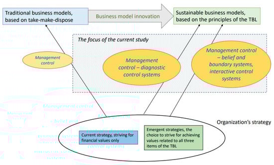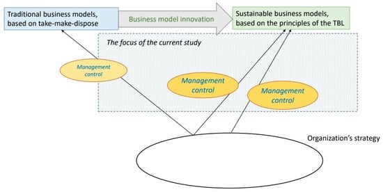 This paper focuses on management control as the processes by which organizations translate their strategic choices into business model innovation (Figure 1). Management control is relevant to enable business model innovation, both for adjusting existing business models and for establishing new ones. The shift to new and sustainable business models for the achievement of multiple values is relevant and meaningful for manufacturing companies, especially for resource- and energy-intensive industries [3]. The current paper presents empirical evidence from the construction industry, which is generally known for the massive use of virgin materials and energy [6], for instance.