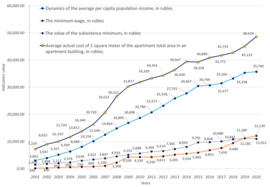 However, when analyzing the housing and communal service industry, special attention should be paid to housing and communal services, in particular residential real estate, which is part of the basic needs of the country’s citizens. It is the satisfaction of the need for housing that is the starting point of the country’s economic development, as there is a direct relationship between labor productivity and the quality of housing. The able-bodied population—having the opportunity for normal, good rest, communication with family, and a comfortable life—more successfully copes with their responsibilities, and therefore, significantly affects the growth of the country’s GDP.