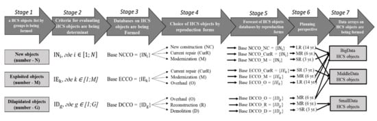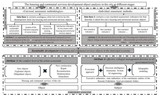Summing up the issue of the relevance of the formation of management initiatives by creating conditions for the sustainable development of housing and communal service facilities based on the interconnection of the activities of all of the participants in this process and the use of modern digital technologies, it is important to note that work in this direction should take into account all of the existing industry problems and all of the stop factors and opportunities for their development [26]. Therefore, the scientific hypothesis of this study lies in the assumption that, for the sustainable development of urban objects facilities, it is possible to:
