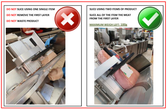 The project directly involved the director of the store, who acted as a sponsor; a member of the lean management team of the company, who provided the expertise in the principles, methods, and tools; the manager of the cold meat market, who participated as process owner in the project; and all of the four employees from the permanent operational staff belonging to that market. The store operators of the market and their manager were invited to participate in the workshop, whose duration was scheduled to last two days. An experienced member from the internal lean team was selected to facilitate the workshop. The agenda, objectives, and outcomes for the event—both in terms of the sustainability and operational performance—were defined and communicated to participants and interested parties along with other relevant resources; in particular, the material needed to conduct the workshop and other logistics matters.
