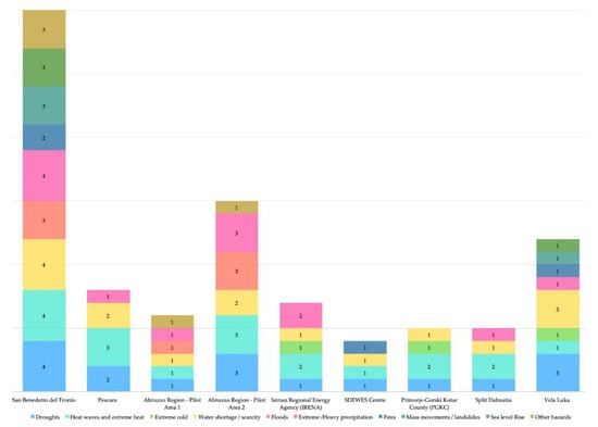 A central topic that emerges from a comparison of the cases relates to the data used to define climate scenarios and the risk and vulnerability assessment (RVA) (Table 3 and Table 4). Most data that form the basis for planning on all levels and defining climate scenarios are processed nationally by the Ministries of Government Agencies, both in Italy and Croatia. National climate data are also accessible in open data format and usually have a detail referring to macro climatic regions. With regard to downscaling these data and climate scenarios, it should be highlighted that in Croatia, the partners of the Interreg Joint_SECAP project reported a scarcity of data and information on the regional and local scales [,].