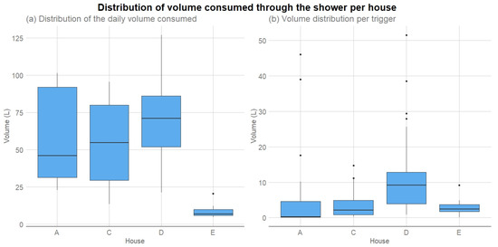 For example, if a resident has a habit of using high flows, his/her consumption flow rate range will be high, but this does not always imply waste. It is possible for residents to use equipment quickly, thereby avoiding volume loss. Consequently, evaluating only the flow rate is not the best metric for assessing the quality of water use. Similarly, in terms of duration, long uses may indicate waste; however, if the flow rate is low, it is natural that the time invested in the activity is greater. Analogously, high volumes consumed for an activity may appear wasteful, but these volumes may meet the individual’s basic needs and thus are not necessarily wasteful. As a result, when comparing the obtained values with references to evaluate water consumption, it is necessary to consider the entire context.
