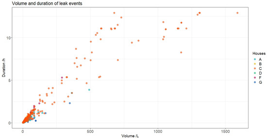 The characteristics of an unknown time series are compared to the parameters of predefined devices, and if there is compatibility, the time series is labeled by the corresponding fixture. This process is based on a list of devices in a given order, with the first device that matches being selected. This software’s information can be found at https://aquacraft.com/ (accessed on 5 November 2021). As with any algorithm, it is unlikely to achieve a 100 percent trustworthy classification if different devices exhibit similar behaviors.
