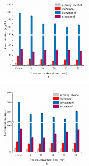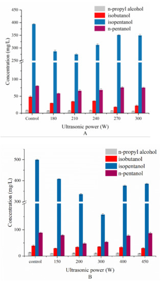 Chicago/Turabian StyleZhang, Qingan, Hongrong Zheng, Shuang Cheng, Bowen Xu, and Penghui Guo. 2022. "Comparison of Ultrasound Type and Working Parameters on the Reduction of Four Higher Alcohols and the Main Phenolic Compounds" Sustainability 14, no. 1: 417. https://doi.org/10.3390/su14010417
