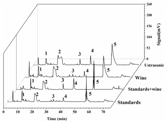 3.6.1. Effects of Treatment by SB-500DTY Ultrasound on the Phenols of Red Wine