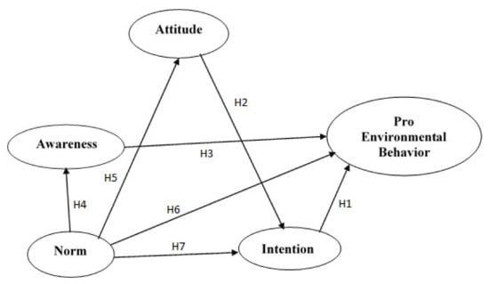 An intriguing topic being researched is the impact of attitudes, norms, and awareness on pro-environmental intentions and behavior (ProEnv Behavior). Thus, the purpose of this article is to explore the structural model of how attitude variables, norms, and awareness contribute to intention and ultimately to pro-environmental behavior. This article is organized systematically to make it easy for the reader to follow, beginning with an introduction that explains why this topic is interesting, then moving on to a literature review, research methodologies, results, and discussion. Finally, at the end of this article, we summarize the study’s implications and limitations.