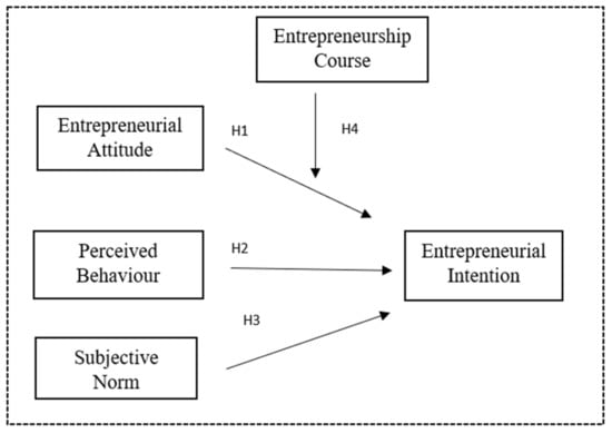 Worldwide, many studies have employed using the TPB to study entrepreneurial intention in students in different fields. The TPB has been used to study entrepreneurial intention in nursing students in South Korea [28]. Similarly, another study has been performed in Greek universities to study the entrepreneurial intention among business students [28,29]. The current study has also employed the TPB to study entrepreneurial intention among students at University Technology PETRONAS, Malaysia. The following section has discussed the theoretical foundation of the current study.