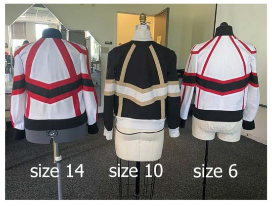 16]. In Carrico’s technique, grading is accomplished through carefully planned seam placements with varying widths of banded trims inserted. These bands grow or shrink in width, effectively sizing the garment up or down, utilizing apparel industry grading metrics, to create multiple sizes of a garment. Through the application of this technique to several prototypes, Carrico fine-tuned the approach across a range of women’s separate garments and fit styles in her own research. In order to further evaluate the application of the Carrico Zero-waste Banded Grading (CZWBG) [