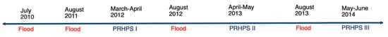 - Kirsch, T.D.; Wadhwani, C.; Sauer, L.; Doocy, S.; Catlett, C. Impact of the 2010 Pakistan Floods on Rural and Urban Populations at Six Months. PLoS Curr. 2012, 4. [Google Scholar] [CrossRef] [PubMed]