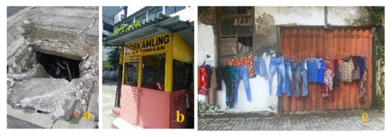 - Shirleyana Hawken, S.; Sunindijo, Y. City of Kampung: Risk and resilience in the urban communities of Surabaya, Indonesia. Int. J. Build. Pathol. Adapt. 2018, 36, 543–568. [Google Scholar] [CrossRef]