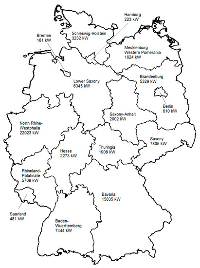 Installed capacity of GSHPs per German federal states; source: own illustration, data extracted from: http://www.erdwaermeliga.de/erdwaermeliga-bundesliga.html (last accessed on 17 December 2021), data refer to 2017.