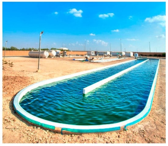 Several studies have focused on the influence of the wastewater source (e.g., artificial, municipal, agricultural, or industrial) on nutrient removal, microalgae growth rates, biofuel production, or a combinator thereof [87,88,89,90]. Microalgae cultivation in large-scale areas under sunlight and outdoor conditions experiences several difficulties. In the Middle East and Arabian Gulf, the harsh climate and hot desert weather increase the water evaporation rate and change the growth medium constituent concentration. For example, the daily water loss can reach more than 2 cm. Thus, in most systems seawater is added to reserve losses from the medium during the cultivation period [91]. In addition to its ability to treat wastewater, microalgae cultivation is a valuable source for high biomass production in non-arable land and has been used in open systems for algal growth [84] as well as grown in unsuitable areas for irrigation [92].