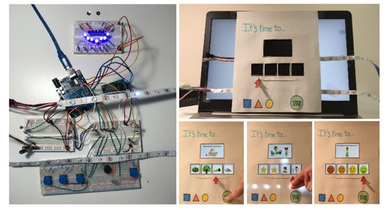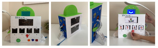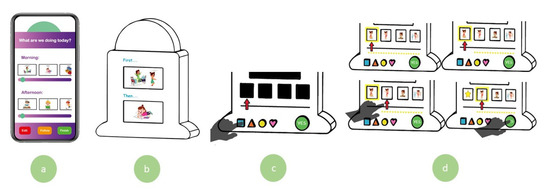 The low-tech tools used in language therapies are based on augmentative and alternative communication systems (AAC), based on the use of symbols or images as a form of expression. The most common approach within these systems is the Picture Exchange Communication System (PECS), where users communicate their needs and preferences by exchanging images. Usually, these images and drawings are collected in a book that users carry with them. Specifically, there are several tools to assist in task planning, such as visual task sequences, choice boards, first-after sequences, visual schedules, key phrase symbols, and tags [22]. These tools are typically used at home, schools, and special centers to help children with autism know exactly how the day will evolve and avoid episodes of frustration and emotional breakdowns. There is a wide variety of products available for this purpose in the market.