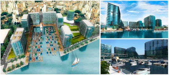 Visualizations of the Marina Dorćol according to the project of the company “Engel ma-rina Dorćol”. Source: beobuild.rs (accessed on 24 June 2021).