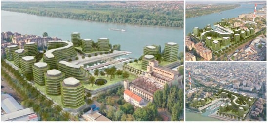 - Belgrade Land Development Public Agency. Public Tender for the Location “Marina Dorcol”. (Javno Nadmetanje za Lokaciju “Marina Dorćol”). 2019. Available online: https://www.beoland.com/lat/javno-nadmetanje-za-lokaciju-marina-dorcol/ (accessed on 24 June 2021).