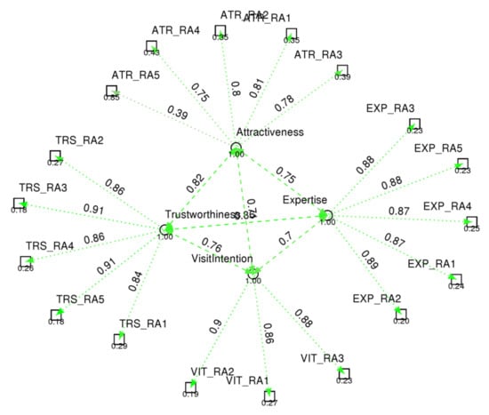 Literature exhibits that the customers’ intention to visit could be resulted from, for example, brand image and brand identity [109], reputation [110], and social media [106]. For tourism sites, an exact value shown by the destination through advertising enhances the visitors’ positive thoughts about the sites, fashioning positive word of mouth and generating an intention to be on sites [111]. Thus, from digital marketing, social media is an emerging channel in tourism that inspires cognitive response that promotes the customers’ affective response [112]. For instance, an influencers’ social media account could be the source of intention to visit potential visitors. In other words, SMIs will affect the customer visit intention.