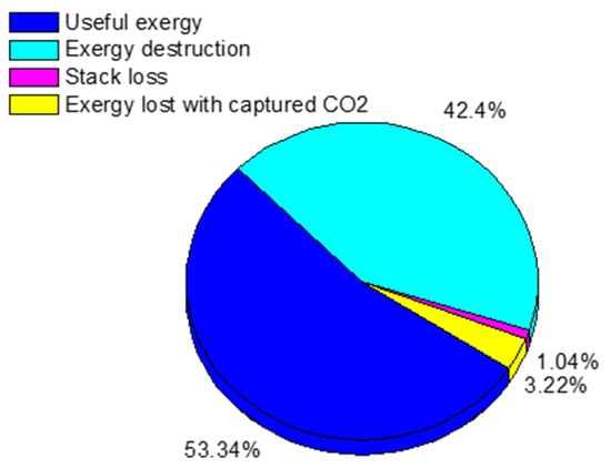 Distribution of total input exergy of the modified combined-cycle power plant with carbon capture.
