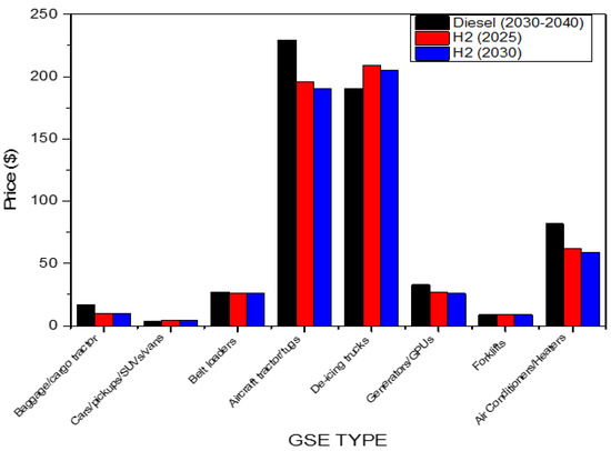 While increased air operations could potentially increase pollution, it pushes the industry to seek its environmental sustainability sooner. The current prediction for green hydrogen as an alternative fuel relies on the declining fossil fuel supply and capital cost curve. Figure 4 shows that the aircraft tractors and de-icing trucks are hydrogen’s main ground support.