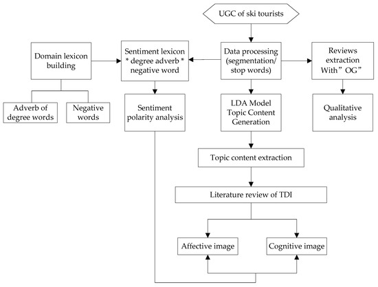 Based on the above, this paper seeks to accomplish three goals. First, in terms of method, a UGC mining framework is proposed. The LDA model and sentiment analysis method based on custom lexicon and rules are combined to identify and analyze the tourists’ destination image and satisfaction distribution of the ski tourists. Second, in theoretical terms, this paper selects the ski resorts, the main venue of the 2022 Winter Olympic Games, as a case study. It identifies the unique image perception attributes of Chinese skiers and reveals how China’s ski tourists are dissimilar from international ski tourists using the lens of DI. Third, to explore the impact of mega-sport events on DI, this study analyzes the UGC mentioning “Winter Olympic Games” (OG) and tentatively explores the image perception of tourists from the perspective of the OG. The paper is organized into five sections. A literature review is presented in Section 2. Section 3 contains the method construction and data analysis, and the results are discussed in Section 4. The paper closes with a discussion of the implications and limitations.