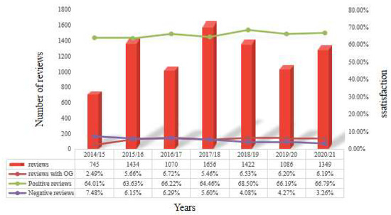 There is a close relationship between mega-events and tourist destinations as the hosts of these events are important tourist destinations. Since the 1990s, the rapid growth of mega-events has made these events a strategic lever for the management of DI [3,62,63,64,65]. Many destinations and countries are competing to host mega-sport events. The impact of mega-sport events on DI has attracted much attention [65,66,67]. Although China won the bid for Olympic Games in July 2015 successfully, the reviews refer to the OG that already existed in the 2014/15 snow season (see Figure 4). In the following six snow seasons, the reviews mentioning OG accounted for an average of 6.12% of the total reviews each year. To further explore the impact of the OG image on the DI, this study analyzed 526 reviews that included “winter Olympic games” or “Olympic games”. Due to the small sample size, we read and examine this part of the reviews one by one manually. Finally, the impact of OG on the DI is summed up which is shown in Figure 4. We summed up the two motivations for skiing in Chongli. One is to feel the halo of the Olympic Games, such as the comment “this is the main venue of the Winter Olympic Games, to greet the OG, my family specially came here to ski this year”. The other is for high quality, that is, the OG represents high quality in their mind, for example, “As the OG can be held, the hardware facilities must be impeccable, here really did not let me down”.