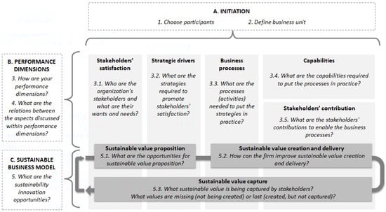 In doing so, a Two-Lenses Model (2LM) is proposed, based on a performance measurement system (PMS) framework called the performance prism model [33], and three elements of business models—a value proposition, creation and delivery system and value capture [34]—in the context of corporate sustainability. Presenting two test cases, this paper develops and applies a step-by-step process to support companies in the critical analysis of their current CSP and, based on this, instigate them towards the identification of innovation opportunities to promote SBM. Using an academic perspective to develop and test practice-oriented tools is not novel to the literature on corporate sustainability [35,36,37]. While some are tools based on computer interface and programming [35,37], others seek to instigate corporate sustainability innovation discussions based on face-to-face interactions between academics and practitioners with support of a brainstorming/workshop tool [36,38,39]. The present research is more related to the second approach on tool proposition. This research proposes to advance knowledge towards two research gaps identified by Evans et al. [30]: the lack of knowledge on drivers for successful sustainable business model innovations and the lack of cases addressing how to innovate business models for sustainability.