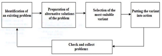 The description of the process of solving quality management problems in a company begins with a comprehensive, complete, and comprehensible description of a specific problem that needs to be solved; we are talking about the so-called problem diagnosis, which is the diagnosis of the starting situation. There are some suitable methods and tools for this. Then, the second step is the generation and selection of ideas and suggestions for problem-solving, followed by the analysis and evaluation of individual proposals and the selection of the optimal solution. This solution is supposed to eliminate the problem. The next step is the application of the chosen method for solving the problem in practice.