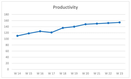Productivity. With fewer defects to analyze, repair, and re-inspect, the cycle time can be reduced to almost its theoretical value. This will result in an increase in the volume of output units for a constant time. This is known as increased productivity that is, manufacturing more with the same resources or manufacturing the same with fewer resources. The following graph shows an example of a productivity index and the behavior of productivity over time. Productivity is measured in units per hour per man (Y axis) (see Figure 6).