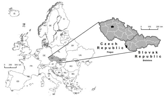 In about half of the first decade of this century, the Czech and Slovak retail gradually developed in a highly competitive sector. Later, not all retail chains remained in it []. K-mart (Detroit, MI, USA) left both markets as early as in 1996, and the stores were taken over by Tesco (London, UK). In 2005, the network of Julius Meinl supermarkets was sold to Ahold (Zandan, The Netherlands) in the Czech Republic. One year later, Carrefour (Boulogne, Billancourt, France; the operation was terminated in 2018 in Slovakia) left the Czech market and sold its hypermarkets to its competitor—Tesco, a British retail chain. In 2007, Delvita (Delhaize Le Lion, Anderlecht, Belgium), a discount Belgian retail chain, left the Czech market, and the stores were taken over by Billa (Vienna, Austria); a similar transaction was realized in Slovakia two years earlier. One of the last significant changes in Slovakia was the withdrawal of Ahold (Zandan, The Netherlands). In the Czech Republic, about fifty loss-making stores of Spar (Amsterdam, The Netherlands) were taken over by Ahold in 2014, and Ahold became number one in the Czech Republic. Arrivals and withdrawals of foreign retailers were developing similarly in Slovakia; however, some aspects were different from the Czech Republic, and sometimes also with a different time diffusion.