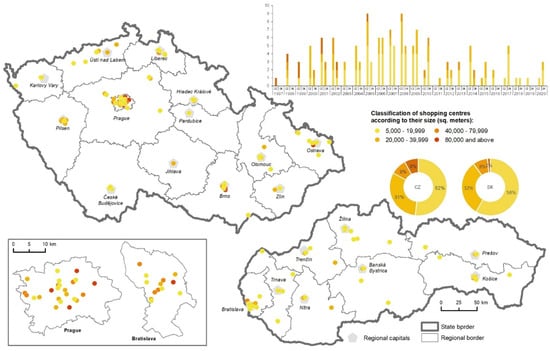This paper aims to assess the development and spatial expansion of shopping centers in the cities, taken as an example of post-socialist countries. The authors intend to identify trends and changes in the sustainable development of shopping centers in both countries by employing comparative and statistical analyses. An important sub-objective is to classify the shopping centers according to selected criteria, considering temporal and spatial aspects on the national level. As for the local level, it is an analysis of the shopping centers’ spatial distribution with selected qualitative elements in Prague and Bratislava, the capital cities, in various periods. The authors try to find out answers to the following research questions: