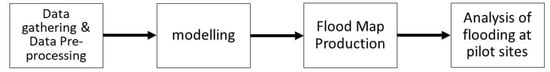An Early Warning System (EWS) for prediction of climate induced risks, e.g., heat waves, droughts, and floods, is an integrated system of digital technologies or tools that guide the detection of and coordinates the response to emergencies by employing the tasks of data acquisition, decision making, and information dissemination []. A properly designed EWS to take protective measures prior to the occurrence of risks has four interconnected components, namely: (1) Risk knowledge: risk assessment exercises provide essential information in order to set priorities for mitigation and prevention strategies and designing EWS; (2) Monitoring and forecasting: systems with monitoring and forecasting capabilities provide timely estimates of the potential risk faced by communities; (3) Dissemination: communication systems are needed for delivering warning messages to the potentially affected locations; and (4) Response: coordination, good governance, and appropriate action plans are key points in effective early warning [].