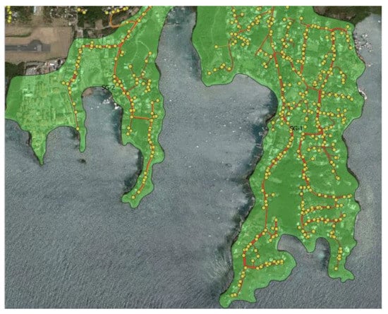 Finally, the CTCN established a server-based ‘audit’ RMS using GIS structure and procedures for better water resources monitoring and management. Figure 3 describes the distribution network of the estimated water pipelines (red line) and data gathering points (yellow dot) for water audit information around two districts in Grenada. In the above two D-TAs, the use of satellite imaging and Global Positioning Systems (GPS) in new RMS products for monitoring environmental conditions made the management of food and water more effectively controllable.