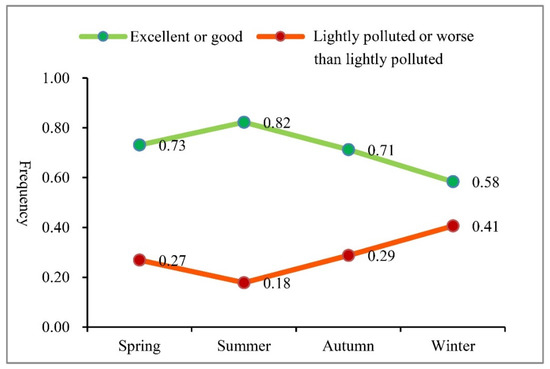 Unlike previous studies that selected a few industrial, agricultural, and provincial capital cities of Northeast China as case areas [54,55], this study, selected the whole area of Northeast China as the study area, which supplements the empirical studies on regional air quality. Besides, compared with previous studies that only considered air quality changes from a single perspective (such as pollutant concentration), this study investigated the space–time characteristics of air quality from multiple perspectives, including throughout a year and a season, and the monthly change characteristics of priority pollutants.