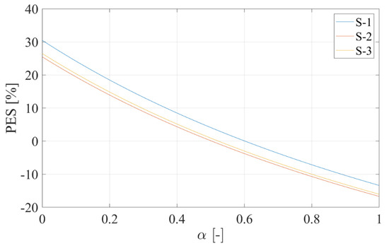 Figure 7 displays the optimal response surface for the renewable plant adopting two-stage and three-stage membrane separation upgrading technology (2SMP and 3SMP). The layouts featured by the higher operating pressure and the higher battery and PV capacity achieve the best results for 2SMP, i.e., a PE of roughly −5.02 GWh/year and a C of about −483 k€/year. This result is related with the fact that the increase of the operating pressure improves the amount of biomethane produced by this kind of plant. In fact, the higher the pressure the higher the driving force of the membrane separation process (see System Model). This allows the membrane to separate a higher share of CH4 from the biogas mixture.