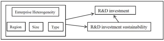 In addition, another research focus of the study is the factors affecting the sustainability of R&D investment. According to Hypothesis 4a, the sustainability of enterprise R&D investment may be affected by heterogeneous factors, such as region, size, and type of enterprise; thus, model (3) is established. Besides, according to Hypothesis 4b, the sustainability of R&D investment may further affect the enterprise’s R&D investment. Therefore, the sustainability of R&D investment is put into the model as an independent variable, and model (4) is established.