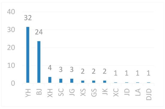By region, in Figure 2 of the whole sample, the number of listed high-tech enterprises in the BJ district is the highest, and the YH district ranks the second. However, in Figure 3 of enterprises with sustainable R&D investment from 2016 to 2019, the YH district ranks first, which reflects that enterprises in the YH district have a relatively better sustainability of R&D investment.