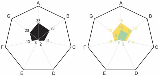 In each plan examined, the extent of occurrence of the individual arrangements for the plans was assessed. Instead of a descriptive rating (bad, medium, good), a scoring was used to better compare the features of the plans later. A lack of findings was scored at 0 points, the presence of limited, residual findings at 1 point, and full and precise findings at 2 points (Figure 2).