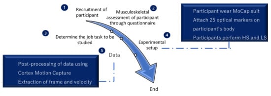 Each participant was requested to wear a motion capture suit with 25 markers attached to different parts of the participant’s body, including the back of the head, chest, spine, arms, hand and shoulder, elbows, wrist, thigh, knee, and legs. All the participants performed the HS and LS binning process according to the respective procedure.
