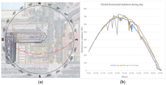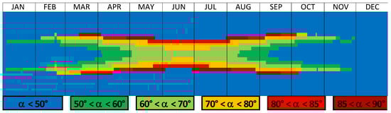 The generic incidence angle of the solar radiation over the surface was evaluated in accordance with [56], using the following equation (based on Figure 7b):
