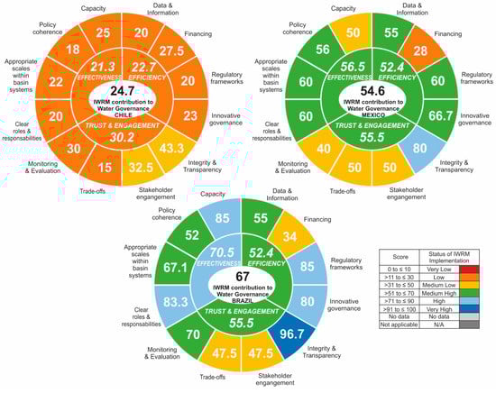 SDG 6.5.1 indicators for IWRM performance within the OECD water governance in Chile, Mexico, and Brazil.