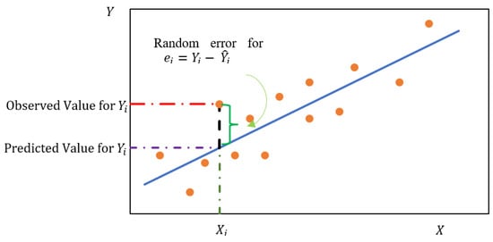 where is the response variable, are the predictor variables, are the collection of regression coefficients, and is an error value, where Figure 2 illustrates Equation (1):