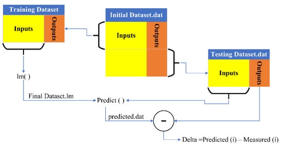 The train and test are represented in Equations (7) and (8), respectively, where and represent the number of data elements in the training and testing sets, respectively.