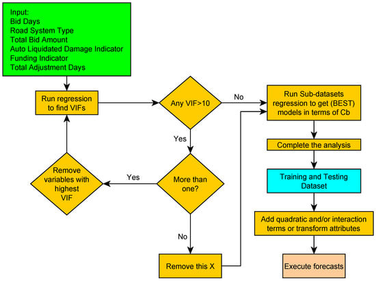Given the problems listed above, an ordinary MLR prediction model was not satisfactory. Figure 13 shows a step-by-step approach to constructing a modified MLR model. Many of these steps were applied in this study to derive a modified MLR model suitable for the aimed goals.