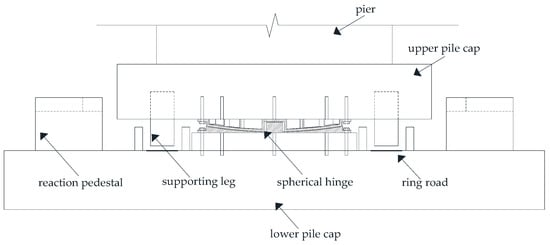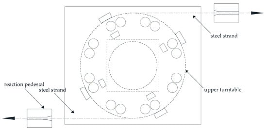 As shown in Figure 2, the rotating system is composed of a down turntable, a spherical hinge, an up turntable, supporting legs, a ring road, and a rotating traction system. The design and construction quality of the rotating system is very important to ensure the success of rotation construction.