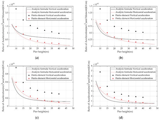 The ratio of acceleration to the pier-bottom bending moments, which were obtained by applying the analytical formula and through the finite element analysis, are shown in Figure 7 and Figure 8. We noticed the following.