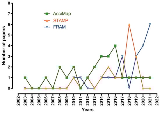 The primary goals of this work were to provide an overview of the papers that had employed AcciMap, STAMP, and FRAM methodologies in their analyses—particularly, in order to: identify the major research flows in terms of the accident analysis, risk assessment and safety analysis of sociotechnical systems; to examine the applicability of hybrid methods for modeling the behavior of accidents and sociotechnical systems; to highlight the advantages and disadvantages of these approaches; to describe safety and accident models in terms of safety-I and safety-II as well as safety-III; and to investigate the impact of using system models for enhancing the systems’ sustainability.