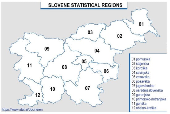 - Statistical Bureau of Republic of Slovenia, Number of Residents. Available online: https://pxweb.stat.si/SiStatData/pxweb/sl/Data/-/05A1002S.px (accessed on 17 December 2021).