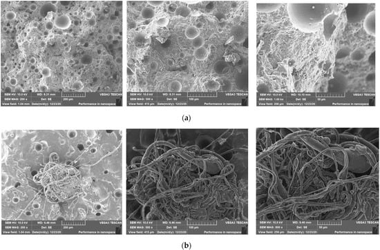 SEM image of the fracture of IV-TSL specimens: (a) IV-TSL16 specimen, (b) IV-TSL18 specimen.
