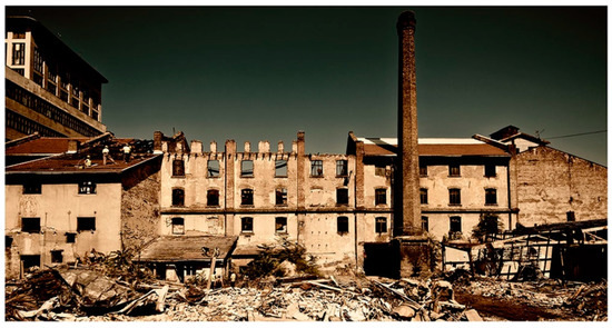 The industrial architecture heritage represents a material testimony on the historical and cultural context which allows for the study of its social and technological development. Abandoned industrial spaces represent places of collective memory [1] (p. 137), and their specific aesthetical expression makes them an important social resource which can be tapped in different ways [2] (p. 505). Numerous studies in the field of industrial architecture have indicated the need for the preservation thereof through some type of new use [3,4]. Special attention is given to the defining of the reuse strategies for abandoned urban industrial spaces, i.e., the so-called urban regeneration management system [5,6,7], where the establishment of the balance in the context of sustainable usage of space (cultural, economic, environmental) becomes the main task. There are also studies dedicated to the analysis of the achieved repurposing results. Such studies are essentially focused on the impact of the use of new facilities and activities on the protection and promotion of heritage values [8].