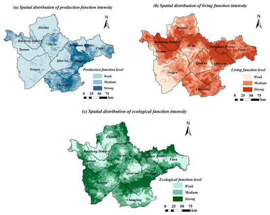 Spatial distribution of production–living–ecological functional intensity of western Jilin.